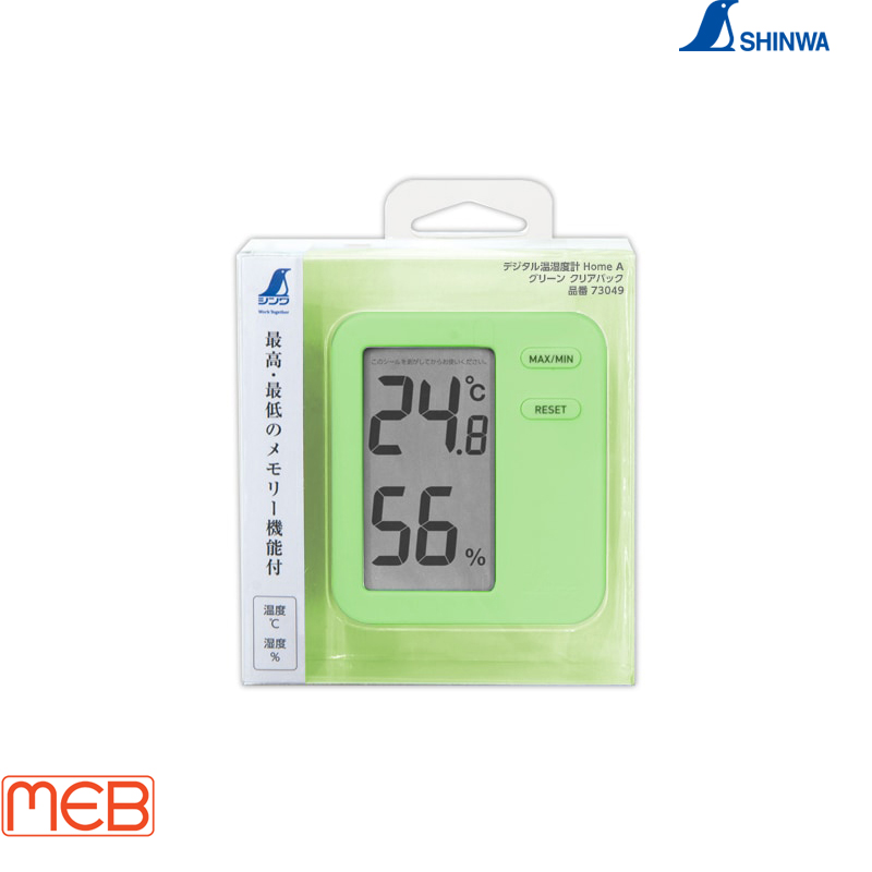 Nhiệt kế/Ẩm kế kỹ thuật số Gia đình A Màu xanh lá cây với hộp trong suốt ( 73049 ) Shinwa