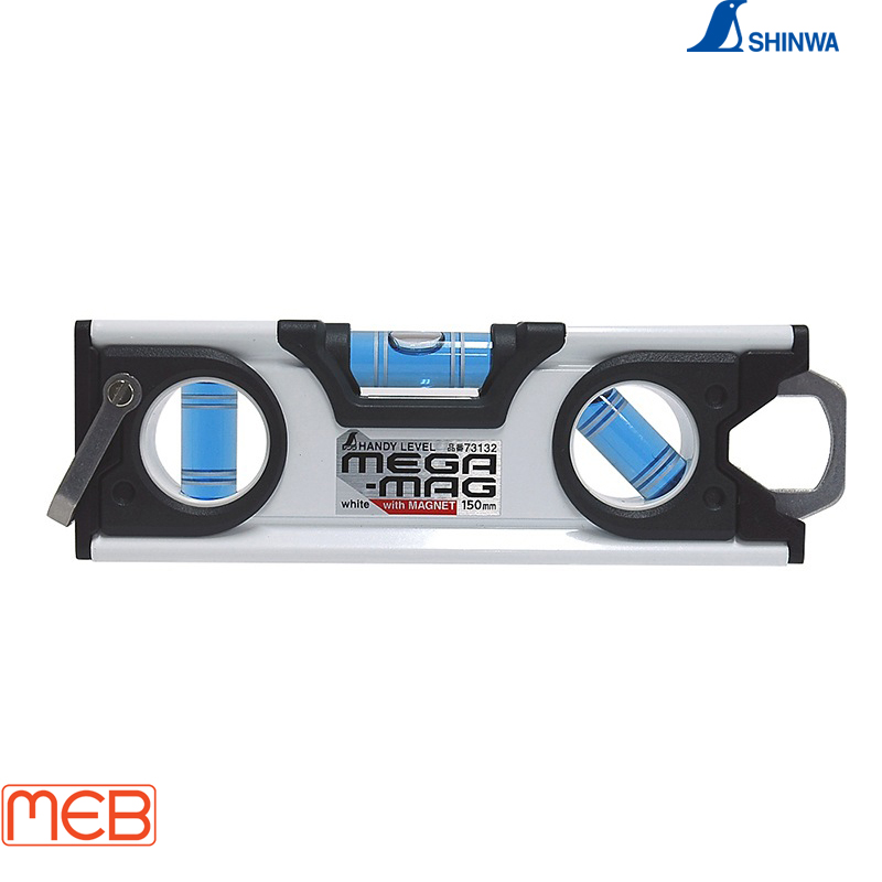 Thước thủy cầm tay MEGA-MAG có nam châm 150 mm Màu trắng ( 73132 ) Shinwa