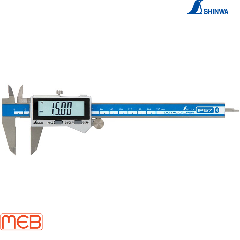 Thước kẹp điện tử màn hình lớn 2 150 mm chống bụi/nước truyền dữ liệu ( 19817 ) Shinwa