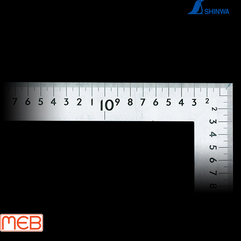 Thước vuông thợ mộc bản rộng mạ crom cứng 15 cm với 8 vạch chia, ký hiệu cm ATSUDEHIROHABA, bao bì tiếng Anh ( 32590 ) Shinwa