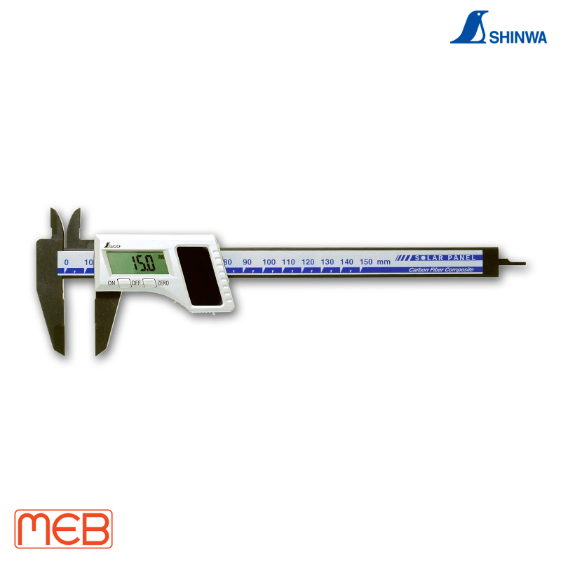Thước kẹp điện tử thân sợi carbon với tấm pin mặt trời 150 mm ( 19981 ) Shinwa