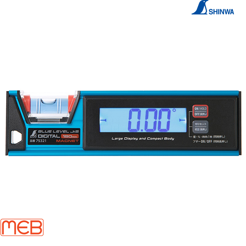 Thước thủy lực Blue Level Jr. 2 Digital có nam châm 180 mm Chống bụi/chống nước ( 75321 ) Shinwa